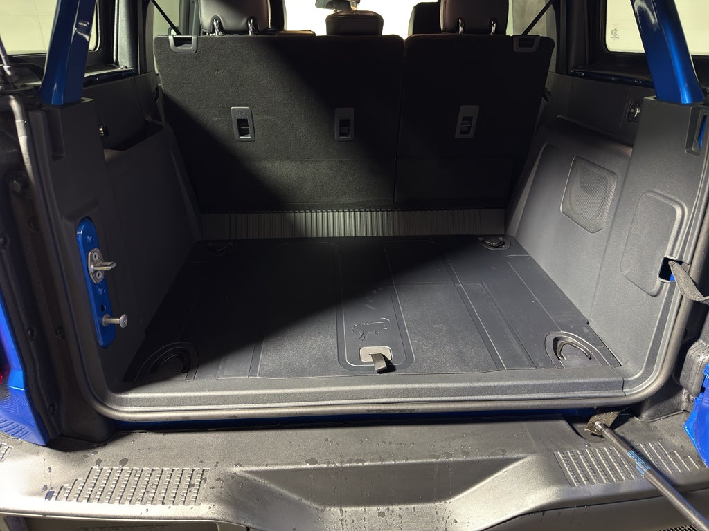 Equipment Group 222A Mid Package: 17" Carbonized Gray-Painted Aluminum Wheel; Rear Parking Sensors; Power Outlet - Back Side of Center Floor Console; Dual Smart Charging USB Ports; 2.3L EcoBoost I-4 Engine; Front Row Heated Seats; Driver and Front Passenger Illuminated Sliding Visor Vanity Mirrors; AM/FM Stereo; Dual-Zone Electronic Automatic Temperature Control; Connected Navigation; P255/75R17 A/T Tires; Ambient Footwell Lighting; Remote Start System; 2-Door Intelligent Access with Lock/unlock. Ford Co-Pilot360: Auto High-Beam Headlamps; Rear View Camera; Pre-Collision Assist with Automatic Emergency Braking; Blind Spot Information System (BLIS); Lane-Keeping System. Black Diamond Package: Rock Rails; Washout Capable Rubberized Flooring; Powder Coated Steel Front and Rear Bumpers; Full Vehicle Steel Bash Plates; Auxiliary Switches; LED Fog Lamps. Carbonized Gray Molded-In-color Hard Top. Marine Grade Vinyl Bucket Seats. Hard Top Sound Deadening Headliner. Velocity Blue Metallic. **Equipment listed is based on original vehicle build and subject to change. Please confirm the accuracy of the included equipment by calling the dealer prior to purchase.**