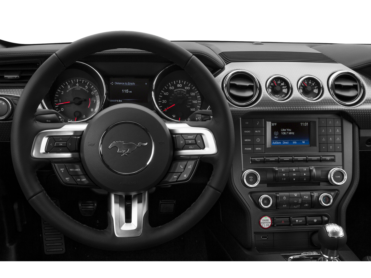 This vehicle features a hands-free Bluetooth® phone system. See what's behind you with the back up camera on this Ford Mustang. The Ford Mustang has a clean CARFAX vehicle history report. The Ford Mustang projects refinement with a racy metallic gray exterior. This Ford Mustang has a V8, 5.0L high output engine. Maintaining a stable interior temperature in this Ford Mustang is easy with the climate control system. Enjoy the incredible handling with the rear wheel drive on this vehicle. The vehicle has fog lights for all weather conditions. With the adjustable lumbar support in the vehicle your back will love you. The manual transmission in this unit will give you exceptional control of your driving experience. Enjoy the tried and true gasoline engine in this vehicle. The Electronic Stability Control will keep you on your intended path. This unit features cruise control for long trips. This small car is easy to park.