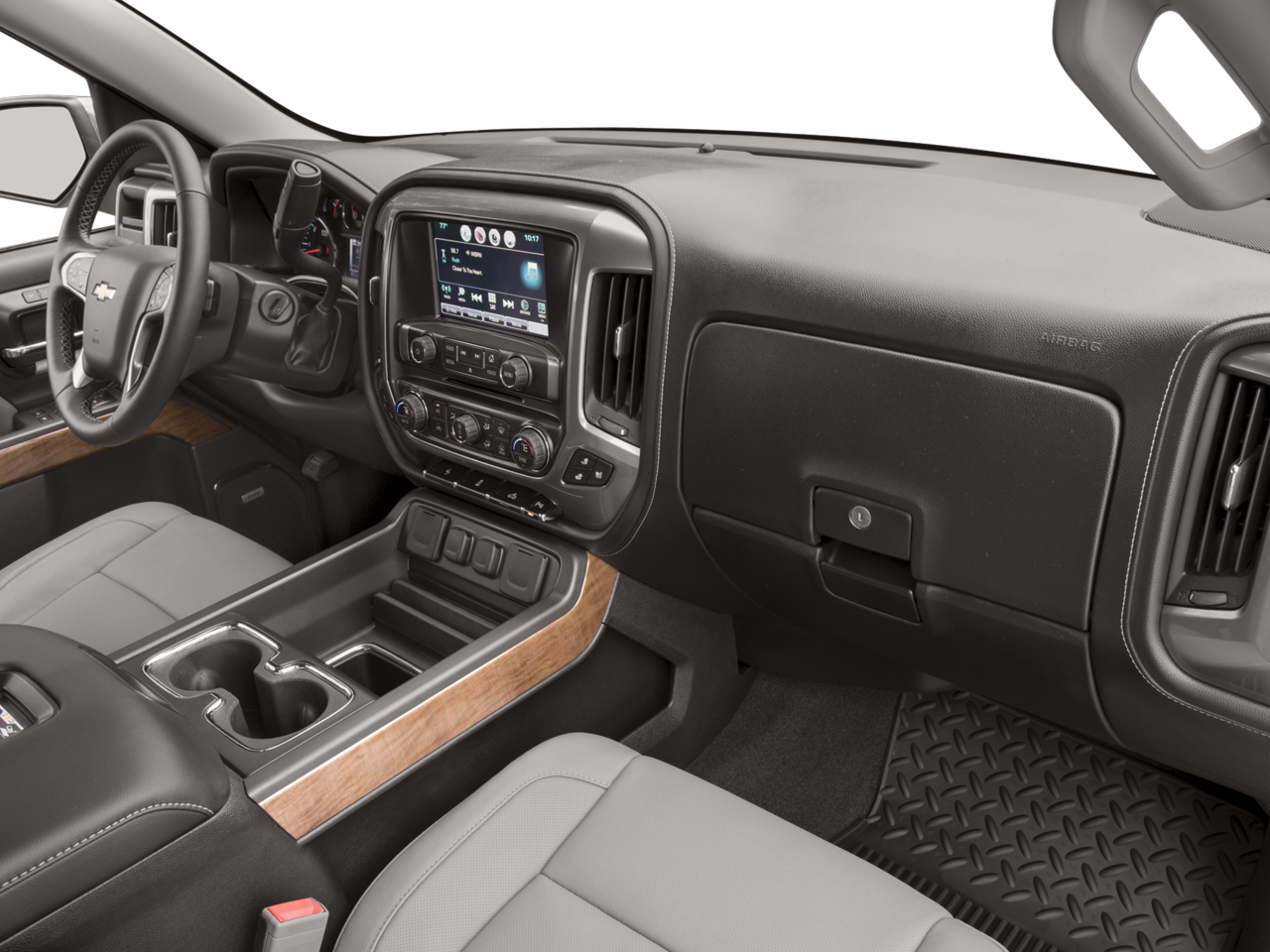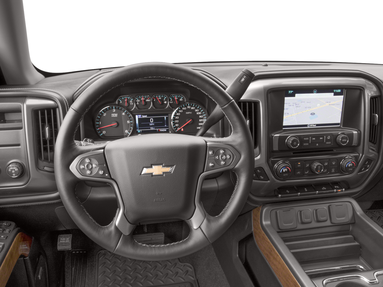 Preferred Equipment Group 1LZ: Leather Appointed Seat Trim; Power Sliding Rear Window; Theft Deterrent System (unauthorized Entry); 4.2" Diagonal Color Display Driver Info Center; Rear Chrome Bumper; 6 Speaker Audio System; Electronic 6-Speed Automatic Transmission with Overdrive; 110-Volt AC Power Outlet; Chrome Grille Surround; Remote Locking Tailgate; Color-Keyed Carpeting with Rubberized Vinyl Floor Mats; OnStar and Chevrolet Connected Services Capable; Remote Keyless Entry; P265/70R17 AS BW Spare Tire; Single Slot CD/MP3 Player; Dual-Zone Automatic Climate Control; Chrome Cap Power-Adjustable Heated Outside Mirrors; Chrome Mirror Caps; Leather Wrapped Steering Wheel with Cruise Controls; Manual Tilt/telescoping Steering Column; Driver and Front Passenger Illuminated Vanity Mirrors; Front Frame-Mounted Black Recovery Hooks; 40/20/40 Front Split Bench Seat; Auto-Dimming Inside Rearview Mirror; Chrome Bodyside Moldings; EZ Lift and Lower Tailgate; Chrome Door Handles; Rear 60/40 Folding Bench Seat (folds Up); Bluetooth® For Phone; Remote Vehicle Starter System; 5.3L EcoTec3 V8 Engine; Auxiliary External Transmission Oi