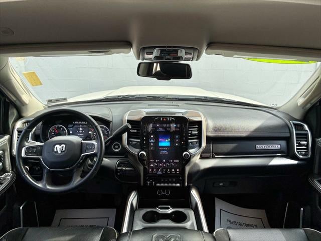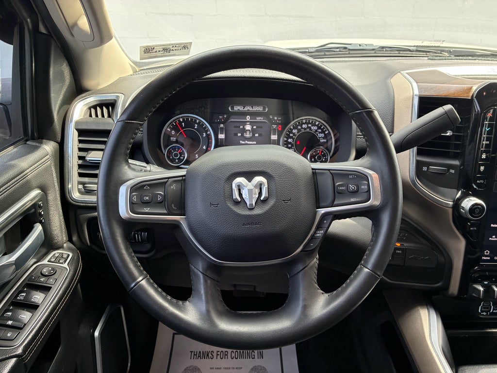 Laramie Level 1 Equipment Group: Google Android Auto; SiriusXM Radio Service; Blind Spot and Cross Path Detection; LED Tail Lamps; Power Adjustable Pedals with Memory; For Details. Visit DriveUconnect.com; For More Info. Call 800-643-2112; Integrated Voice Command with Bluetooth®; 12" Touchscreen Display; Auto Power-Folding Mirrors; Front LED Fog Lamps; Mirror Running Lights; Alexa Built-In; Apple CarPlay; Power Adjustable Convex Aux Mirrors; Forward and Reverse Utility Lights; Disassociated Touchscreen Display; Remote Tailgate Release; Center Hub; 2nd Row in Floor Storage Bins; Rear Window Defroster; Rain Sensitive Windshield Wipers; Rear Power Sliding Window; Connectivity - US/Canada; GPS Navigation; 4G LTE Wi-Fi Hot Spot; GPS Antenna Input; Exterior Mirrors with Heating Element; Auto Dim Exterior Mirror; SiriusXM with 360L; Global Telematics Box Module; Connected Travel and Traffic Services; LED Reflector Headlamps; Foam Bottle Insert (door Trim Panel); 18" X 8.0" Polished Aluminum Wheels; Off-Road Information Pages; Selectable Tire Fill Alert; Trailer Tow Pages; HD Radio; Uconnect 5 Navigation with 12.0" Display Radio; Power Heated Fold Telescopic Mirrors with Memory; Exterior Mirrors with Supplemental Signals; Exterior Mirrors Courtesy Lamps; Auto High Beam Headlamp Control; Chrome Exterior Mirrors; Exterior Mirrors with Memory; Power Adjust Mirrors; Power Telescoping Mirrors; Auto Dim Exterior Passenger Mirror; Auto Adjust in Reverse Exterior Mirrors; ParkSense Front/rear Park Assist System. Quick Order Package 2HH Laramie. Chrome Bumper Package: Bright Rear Bumper; Bright Front Bumper. Snow Chief Group: Clearance Lamps; LT275/70R18E OWL On/off Road Tires; Instrument Panel Mounted Auxiliary Switches; Anti-Spin Differential Rear Axle; Auxiliary Switches Prep; Transfer Case Skid Plate Shield; Dual Alternators Rated At 440 Amps. Protection Group: Tow Hooks; Transfer Case Skid Plate Shield. Chrome Flat Wheel-To-wheel Side Steps. MOPAR Spray in Bedliner. Blind Spot and Cross Path Detection. Leather Trimmed Bucket Seats. 5th Wheel/gooseneck Towing Prep Group. Anti-Spin Differential Rear Axle. LT275/70R18E OWL On/off Road Tires. Pearl White. Instrument Panel Mounted Auxiliary Switches. Tow Hooks. Clearance Lamps. **Equipment listed is based on original vehicle build and subject to change. Please confirm the accuracy of the included equipment by calling the dealer prior to purchase.**
