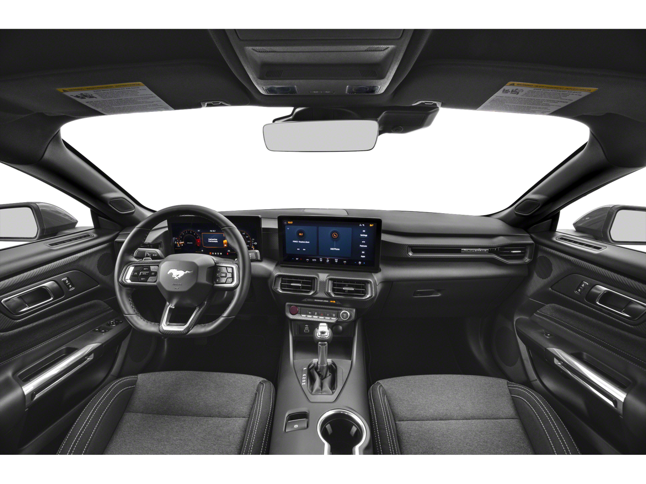 Mustang Nite Pony Package: Black Painted Wedge Decklid Spoiler; Black Mirror Caps; Black GT Pony Badges; Painted Black Roof; Headlamps with Black Bezels. Equipment Group 301A High Package: Ambient Lighting with MyColor; Cloth/vinyl Heated Bucket Seats; 5.0L Ti-VCT V8 Engine; 8" X 8.5" Ebony Black Painted Aluminum Wheels; SiriusXM with 360L and HD Radio; 6-Speed Manual Transmission; 9-Speaker Stereo System; 255/45VR18 Tires; AM/FM Stereo. 3.55 Limited Slip Rear Axle. Floor Mats. 1st Row. Black with City Silver GT Logo. **Equipment listed is based on original vehicle build and subject to change. Please confirm the accuracy of the included equipment by calling the dealer prior to purchase.**